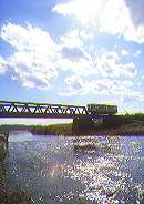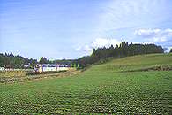しとしとと雨が降り続き、寒かったです。 レールバス単行。強烈な逆光でした。 北海道のような広々とした風景です。 |
