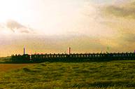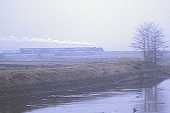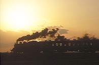 垂直に煙を上げ、超低速で登って行きます。 逆光の写真を、レタッチソフトで加工しました。 |