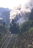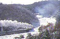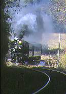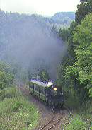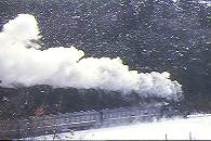 下り列車の久下田発車です。ドレインが無い・・・。 ここは煙が出ない時が多いので、ラッキーでした 。 |