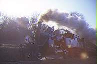 毎月第3土曜日の上り列車は逆向きで運転です 下館到着は4時頃なので日の短い冬場がVです 益子を発車したC12。煙をたなびかせ加速! |