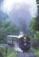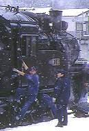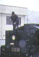 終着駅茂木を目差しラストスパートをかけるC12です。 茂木に到着したC12。帰途に備え作業が行われます。 |