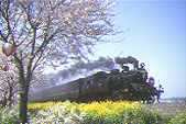 追っかけ中に踏切が鳴ったので、思わず撮影! 春になると、線路沿いの桜となのはなが綺麗です。 |