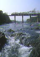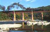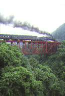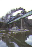 久慈川の鉄橋を渡る常陸大子行きの9857レ。 思ったより煙が出ていたのでラッキーでした。 鷹の巣トンネル直前の鉄橋を渡る9857レです。 |