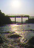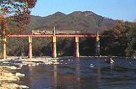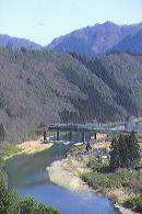 安谷川の鉄橋を行く下り列車を国道から撮影。