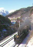 | SL奥利根号は本来D51 498牽引ですが、デゴイチが不調の時や検査入場の場合は ピンチヒッターとしてC58 363が登坂します。スノープロウを付けて雪の中を走る姿は デゴイチに勝るとも劣らない迫力があり、 なおかつ美しいです。 |