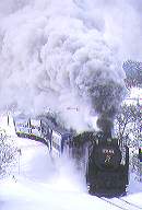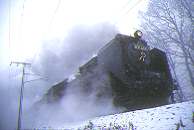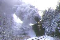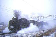 | 毎年2月上旬に磐越西線の郡山−会津若松間で運転されるSL列車です。 雪中走行が狙えるという事で人気が高く、撮影、乗車と大勢の人が訪れます。 1999年の磐梯会津路号の写真です。天気が悪かったのが少し残念です。 |