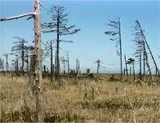 | 立ち枯れ、倒木が多い。その原因は砂地 であり、下の方は塩水であるため→→ |