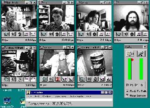 カラーカメラと「Enhanced CU-SeeMe」を使うとカラーの映像が送ることができますが、まだ大半はモノクロです。それにカラー映像の方は、ぼやけた画面が多くあまりよく映りません。それは使用しているカメラも影響していると思われます。