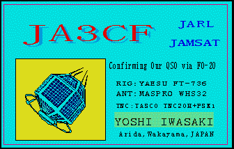 先に打ち上げられた人工衛星JAS-2(FO-29)のBBSがいよいよ動き出しました。FO-23とちがい9600bpsのシステムも搭載されているので、画像データもアップロードできます。