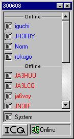このICQ(タイトルから見て開発者はハムらしい)は小型で、常駐して置いても僅かのメモリーしか消費しません。E-Mailやインターネットフォンとの接続などの機能も持っています。それに「カッコー」をはじめ、汽笛やYLのアナウンスなどいろいろな音声が出て愉快にネットサーフィンが楽しめます。