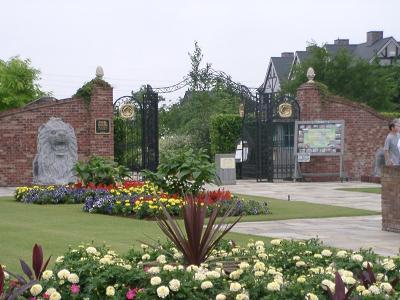 東京ドーム換算約3.7個分、という広い敷地に出来上がったのは、いま巷で評判の『ジョイフル本田・新田店』 その『ジョイフル本田』の敷地内に、見事な英国式の伝統的ガーデンが登場。ガーデンの名前は、二人の庭の設計者の名前をとって、アンディ&ウィリアムズ ボタニックガーデン。 着いて正面花壇と門と花時計を見た瞬間、 「うわーー、こんなところにまあ、よく作ったねええ!」(失礼) ここまで見事な庭園を作り上げるなんてすごいなあ、と感心したわけです。 バラのことをいわなければ、わたしは蓼科の『バラクラ』より素敵だと思いました。 |