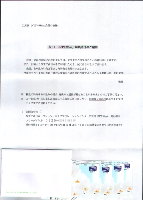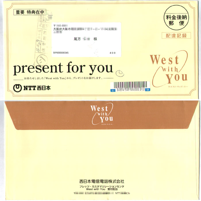 NTT WestWithYou(現CLUB NTT-West)から届いた