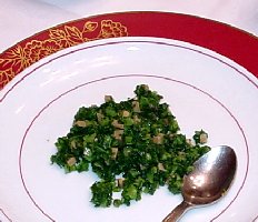 春菊と豆干の前菜は新宿のディープ系の店でも「春菊豆干」の名で出しているようで上海系の家庭料理では結構ポピュラーなようです。 でも、この店の一味違うところは野菜の火の入れ方が絶妙で微妙なところにぴたりと決まってくるところでしょうか。