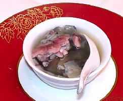 この日のメイン甲魚湯はすっぽんをまるまる一匹使ったもので久しぶりにその味を堪能しました。 少な目の汁で煮こんでいるためかすっぽんの濃厚な味が伝わってきます。 ゼラチン質のエンペラ(君辺)の味は言うまでもなく身の味も相当にいけてました。