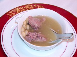 黄豆湯、これはとても手間をかけて作っていただいたようです。 前日から大豆を水に漬けて戻し朝からことことやって最後は蒸して仕上げたそうです。 写真のスペアリブを見ても判るようにちょっと箸でつまむだけでほろほろと崩れそうです。 その甲斐あってこの味もとてもすばらしいものでした。 最後を締めくくるのにふさわしい一品でした。