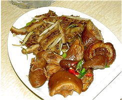 まず最初は火鍋の準備ができるまでこれでもつまんでてということで招待(サービス)で出していただいた滷味の皿です。