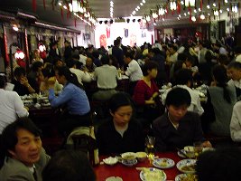 店に到着すると開放前の衣装に肩に毛巾(手ぬぐい)をかけたいなせなあんちゃんたちのお出迎えです。 席に案内されると肩にかけた毛巾でパンと埃を払いってくれます。 更に席につくと手練の技で折りたたまれた菜譜をテーブルの上にひろげ、この店の特色菜について要領良く説明してくれます。