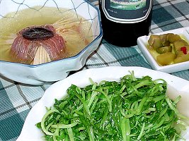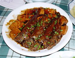 小黄魚焼豆腐は上海家庭料理の特徴である濃油赤醤の味付けが利いていてグッドです。 やはりこういったものは白飯と一緒に食すのがベターかと思うのですがアルコールを飲みながらだとついついこのつぼをはずしてしまいます。