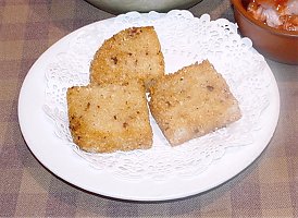 粢飯[米羔]はお米を固めて油で揚げたもので上海の朝飯の一つです。 かっては上海人の馬力の源泉四大金剛の一角を占めていたこの料理も鷺鷺ともなると火腿を混ぜたちょっと高級な料理にはや変わりしてしまいます。