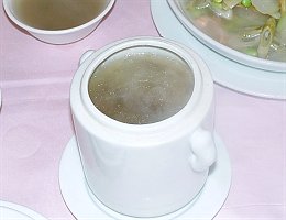 気宇軒昂は男性用スープで中身は海馬(竜の落とし子)、甲魚(すっぽん)、山亀、三鞭、天麻、人参などだそうですが、私の壷の中には海馬は入ってなかったような・・・。 それでもスルメの香りのする良い味の湯でございました。 もちろん店の名に[青見]湯とあるように各種薬膳スープがここの売りなので[青見]湯好きのかたには一度は行って見る価値のある店ですね。