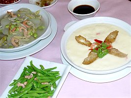 扁尖開洋毛豆焼冬瓜は典型的な上海家庭料理です。 この店は本来は廣東料理の店のようですが現在ではメニューのかなりの部分を上海系の料理で占めているようです。