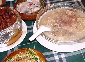 黒醋をつけて食べる手撕魚はニシンの醋漬け、十八鮮は油豆腐豆芽菜のアレンジかななどと思いながら食しましたがもう一つぱっとしません。 サメの骨のスープ鯊魚骨羹がちょっと珍しくて結構いけてたかと思います。 サメの骨は明骨などといって清朝の宮廷料理でも珍重されていたかと思います。