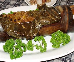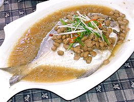 梅黄豆蒸[魚昌]魚は大豆の醗酵食品梅黄豆をマナガツオにのせて蒸した料理です。 以前の上海であればこのての料理はほとんど見かけることはありませんでしたが、最近ではこういった伝統的とも言える調理法が復活してきているところは喜ばしいことだと思います。