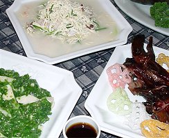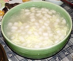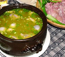 ここの特色菜・老笆神仙湯は鶏と里芋のスープです。 結構さっぱりした味で私は気に入りましたが、一緒に食事をした上海人は鶏の味が薄いと文句をいっておりました。 着いたその夜から、かなり重い中華を食べつづけていたので、軽めの味にほっとしたといったところでしょうか。