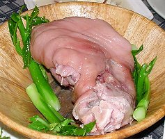 招牌肴蹄膀は豚すね肉の塩漬です。 硝石を入れるので独特の風味が出て色も綺麗になります。 あまり入れ過ぎると体に悪いそうですが、それほど赤くなっていないので分量は控えめになっているようです。 すね肉を醤油で煮こんだりするものは結構あるようですが、この手のものは手間がかかるせいかあまりお目にかかりません。 この日のメニューでは文句無しにこれがベストです。