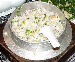 子夜猪油菜飯はラード入りの炊きこみ御飯です。 本来はもっと素朴な味のものだと思うのですが、結構豪華な味の料理になっておりました。