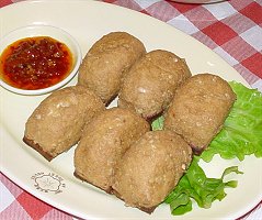 とてもフレンドリーでアットホームな雰囲気を持つ白家餐室の老板はなんと蒙古族なのだそうです。 老板の白さんのお勧めは「千里飄香」とのこと。 早速注文して見ると、出てきたものは食パンに臭豆腐のペーストをこんもりとぬって油でからっと揚げたものでした。 ちょっとスナック菓子風で酒のつまみにも最適と言った感じのものです。