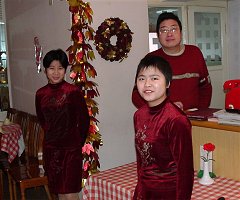 とてもフレンドリーな白家餐室の服務員、右奥が老板の白さん