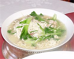 上海の厨師のお得意ということで清炒蝦仁、水晶蝦仁のたぐいはどこで食べても水準以上でしたがやはりここのものは一味違うようです。 さすがですね。 写真の写りが悪いようですがこれはデジカメの特性で明るいものの描写がもう一つなためです。 実物は食欲をそそる美しさを持っています。