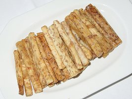 脆香茘芋条はタロイモのから揚げです。 寧波系の料理かと思うのですが台湾にも似たようなものがあります。 揚げたてなら文句無しに美味いと思うのですが、冷菜なので揚げおきしたものになっているのは仕方のないところでしょうか。