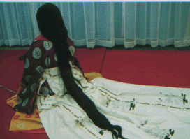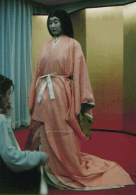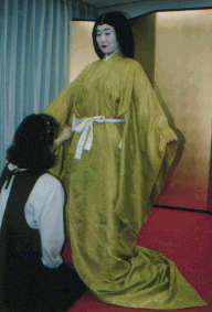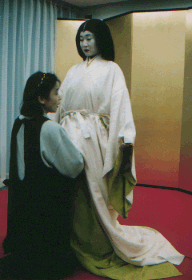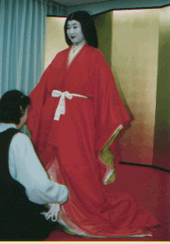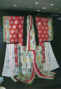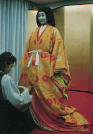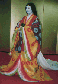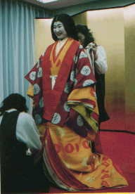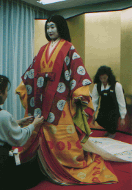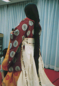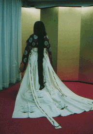 ![]() 唐衣に裳をつけてできあがり。 |