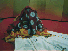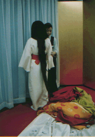 ![]() 紐で結んでいないのでスルッとあっけなく脱げる。 脱いだ後も人がいるように見える。 これを空蝉(うつせみ)という。 |