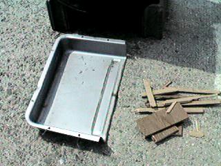 炭はこわれた生徒用スチール机の棚の部分に入れると、あとで素早く取り除けるので便利です。