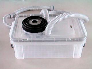 古い掃除機から取り出したモーターを衣装ボックスに取り付けます。