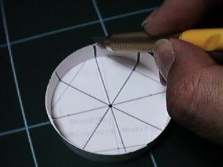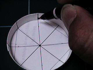 8枚の羽根を作るために、底を8等分して印を付けます。