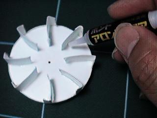 モーターの先には歯車を付けて、ファンとよく接着するようにします。