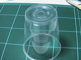 別の紙コップの底に小さ目の穴をくりぬいて空気だめにします。