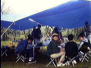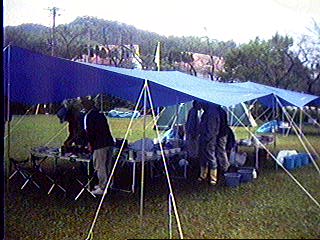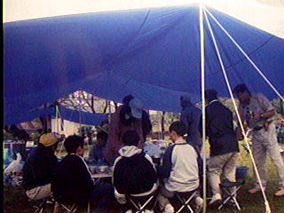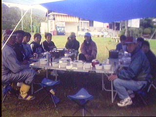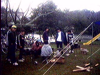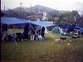 フライの設営方法を指導後、ドームテントの設営はGBに任せ、我々は食料の買い出しの為貴志川方面へ。詳細 内容を皆で打ち合せスーパーへと。今晩と明日の材料を買い出し、キャンプサイトに。