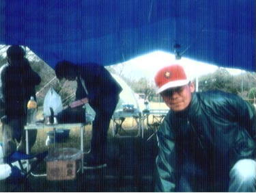 午後4時過ぎより夕辛準備。 GBは火おこしのノウハウを勉強し、飯炊きをした。