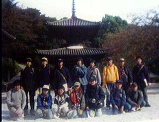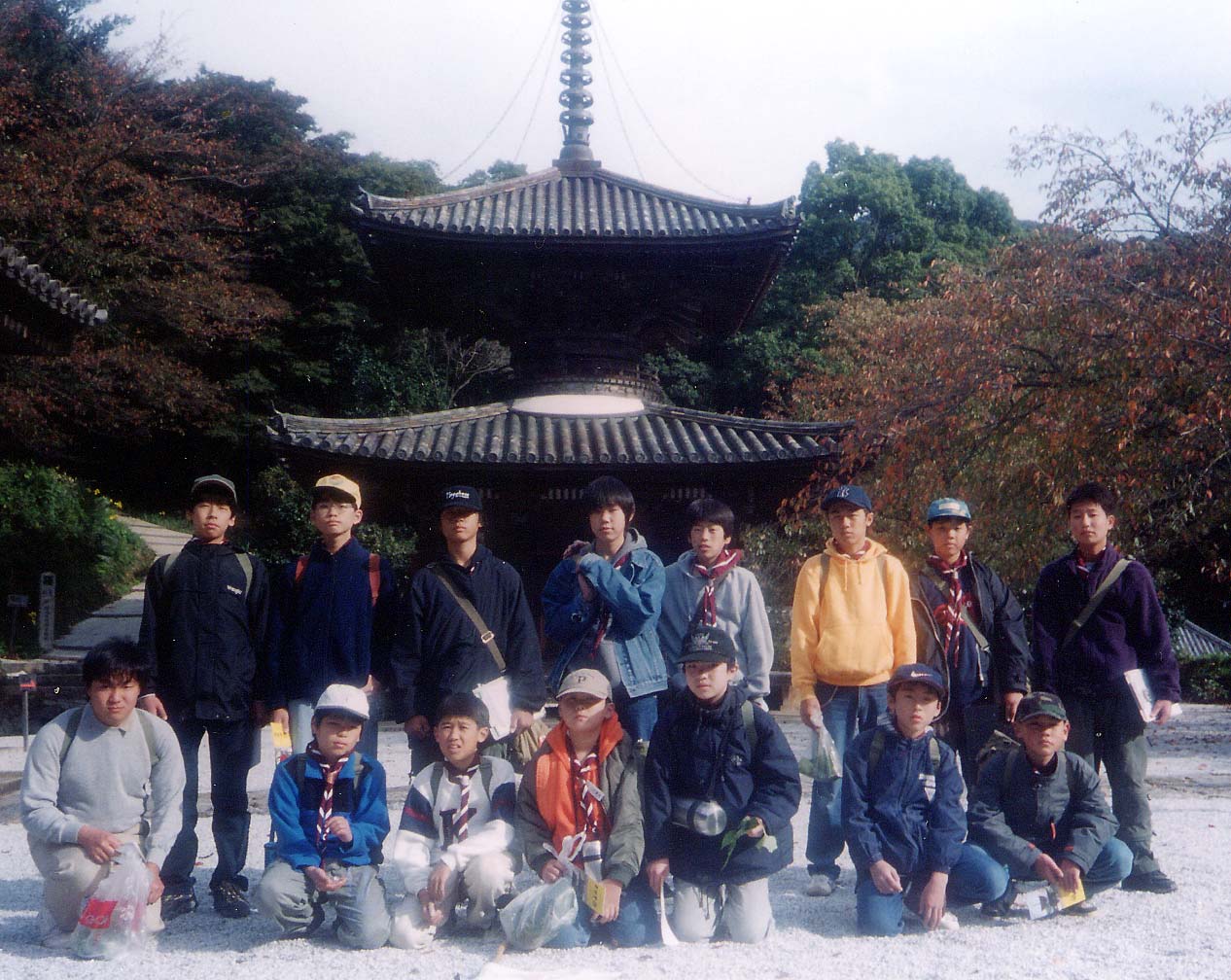 ■ 長保寺 多宝塔の前のスカウト達by熊野古道10kmハイク