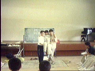 川合副長考案の救急法の寸劇が特に楽しかった。写真左は傷病者発見のシーンだ!