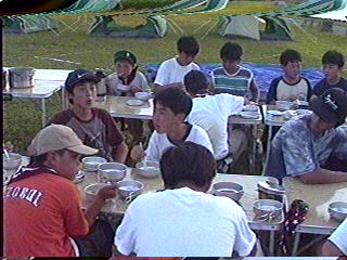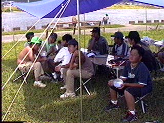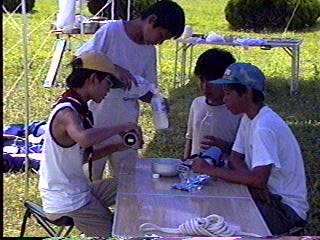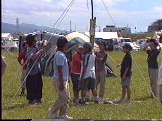 今回のキャンプはいつものとはチョット違いこの8月に行なわれる第11回県キャンポリ−に向けての対策キャンプだ。