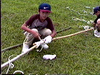 小嶋班長が継ぎ足し結びを頑張っている。 岩崎次長も頑張って......
