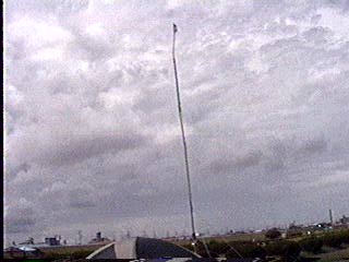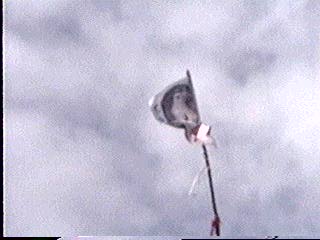 張り綱をしっかりと 風がとても強く、班旗が大きく揺れて...... ひやひやして.....