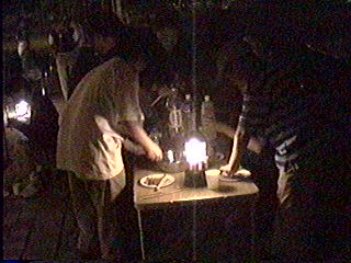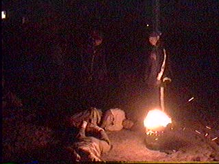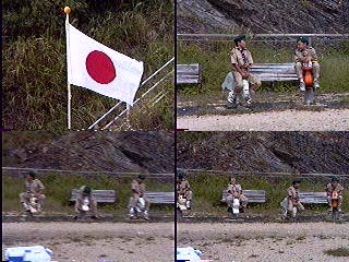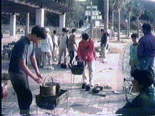渋谷班長も余裕で....... 石橋上班とたのしそうな会話を..... 米をとぎ、飯盒をかまどにのせて.......