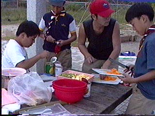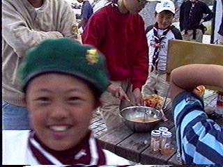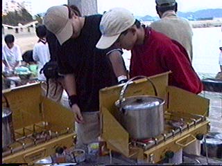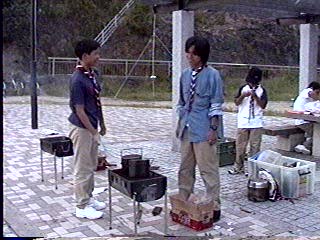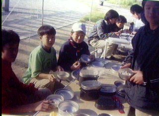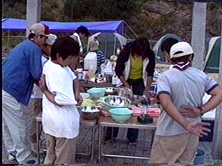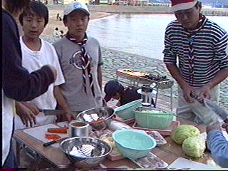 朝食準備もなかなか上手だ。 ただ、班員への 指示がうまくできていないようだ。 当然かな!